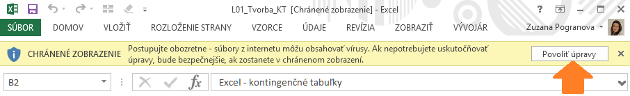 Súbory, ktoré si stiahnete, môžu byť v chránenom zobrazení. To znamená, že sú iba na čítanie a nedajú sa v nich robiť žiadne úpravy. Aby ste mohli so súbormi pracovať, je potrebné "Povoliť úpravy". Väčšinou sa toto tlačidlo zobrazí po otvorení súboru v hornej časti v žltom pásiku.